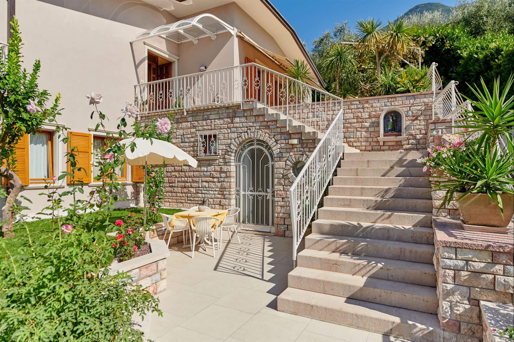 Monolocale N.5, al 1° piano, 32 mq, terrazzo e giardino, solarium arredato, piscina con vasca idromassaggio e vista lago/montagna.